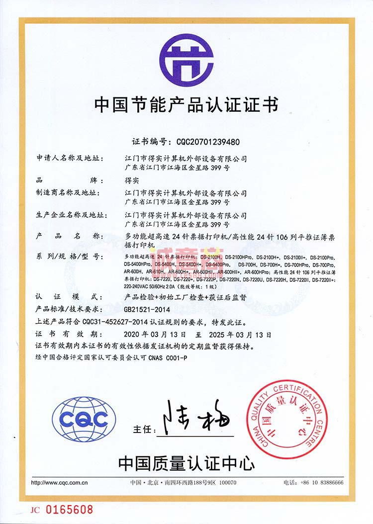 商品名称:得实DS-5400H 高性能24针平推证薄/票据打印机(产品型号调整为DS-7230) 单位:台