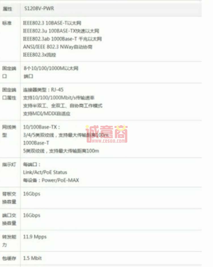 商品名称:H3CLS-1208V-PWR千兆8口POE交换机