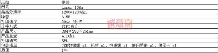 商品名称:惠普 Laser 108a 锐系列激光打印机 单位:台