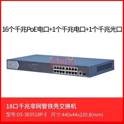商品名称:海康威视 DS-3E0518P-E 交换机网线分流网络集线分线器(18口千兆POE) 单位:台