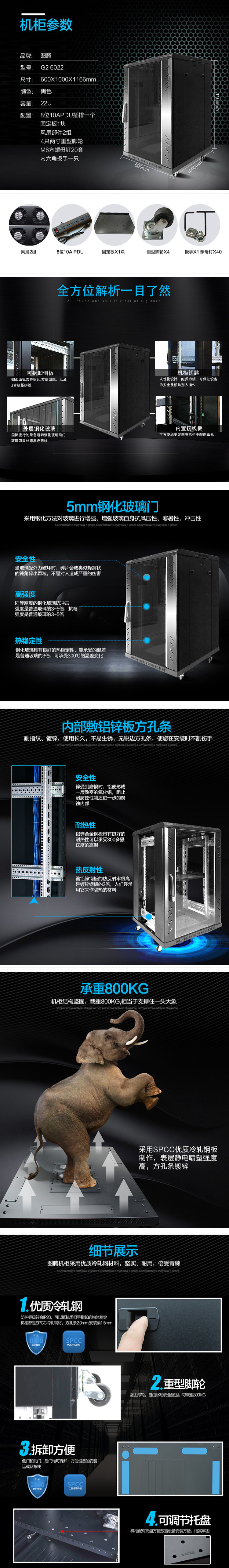 商品名称:图腾 22U 标准网络机柜 交换机机柜 1.2米高